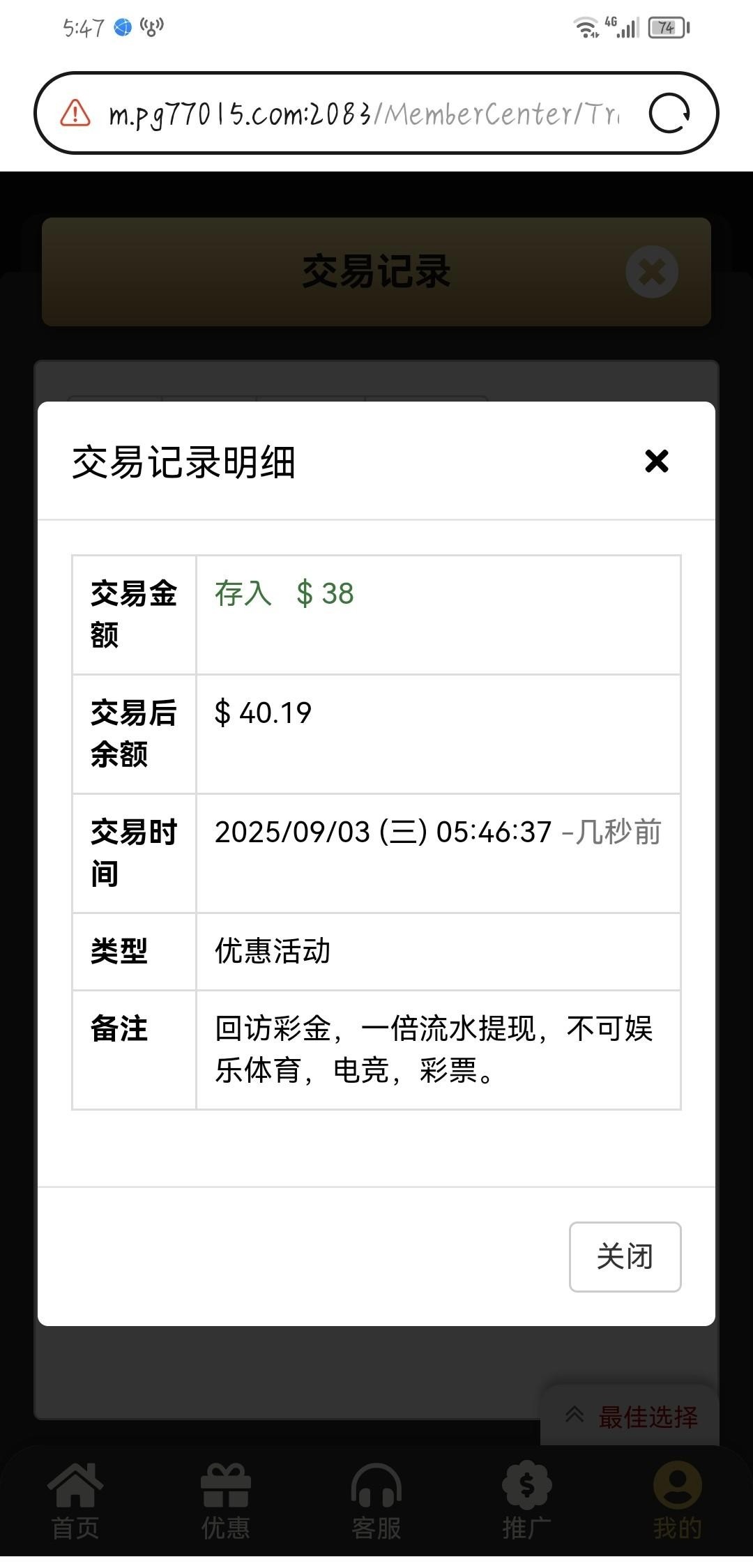 今天无聊随便登进去就看见有38彩金了 前几天充值过30块钱而已 兄弟们去看看有没有 我打出来了 彩金一倍流水 网址可以直接在老哥这里进去 兄弟们可以看看有没有 有就有没有就没有 0870.com