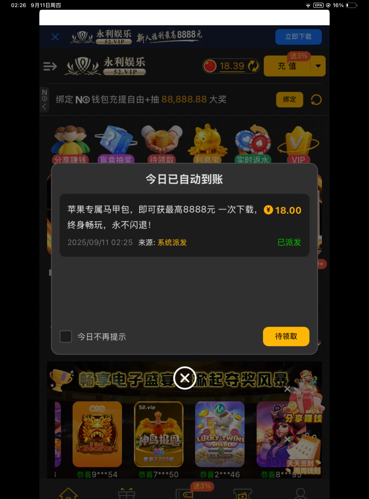 52.VIP,历史充值过100的苹果用户下载APP可以申请