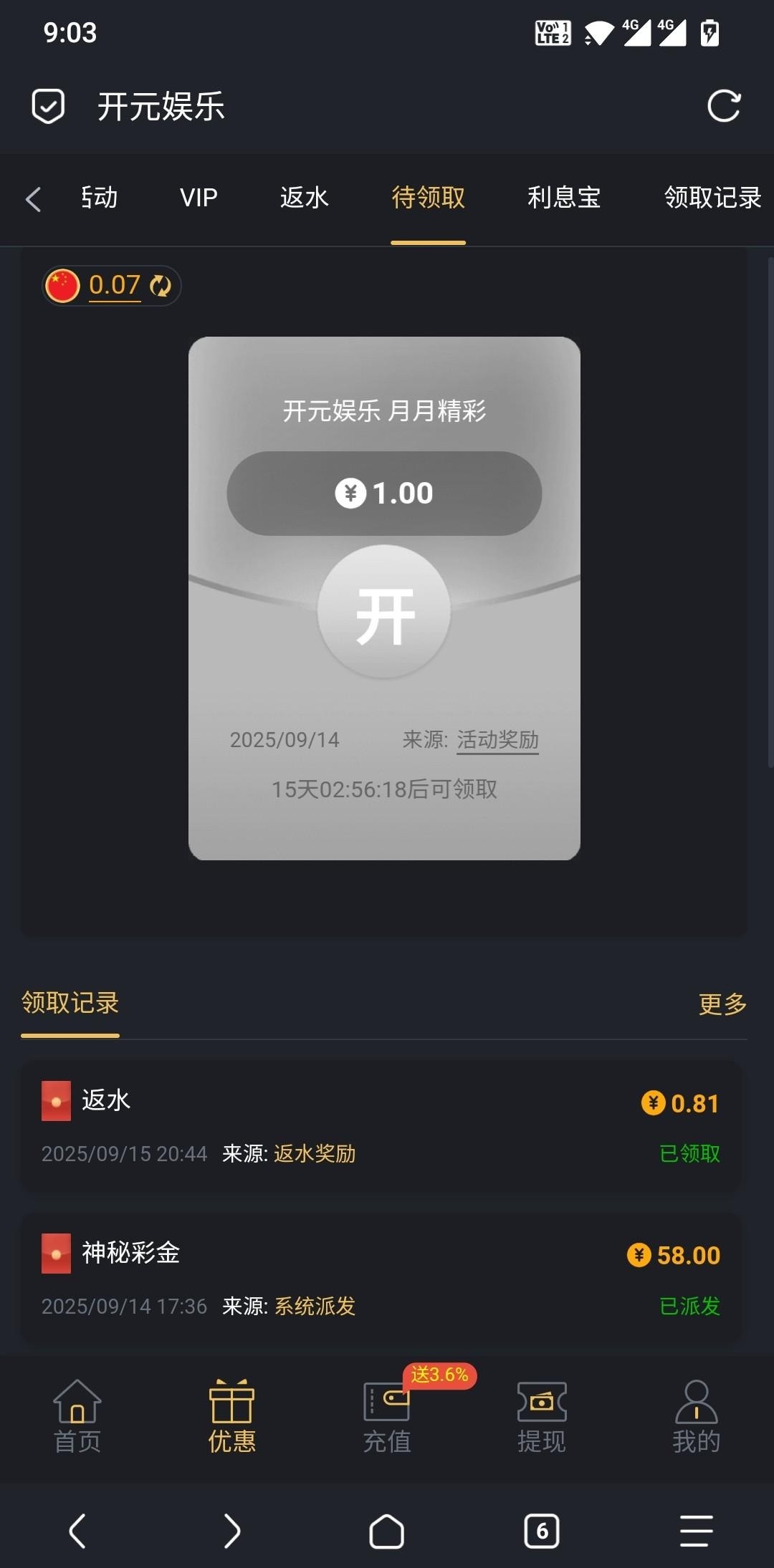 【开元4019】回归彩金