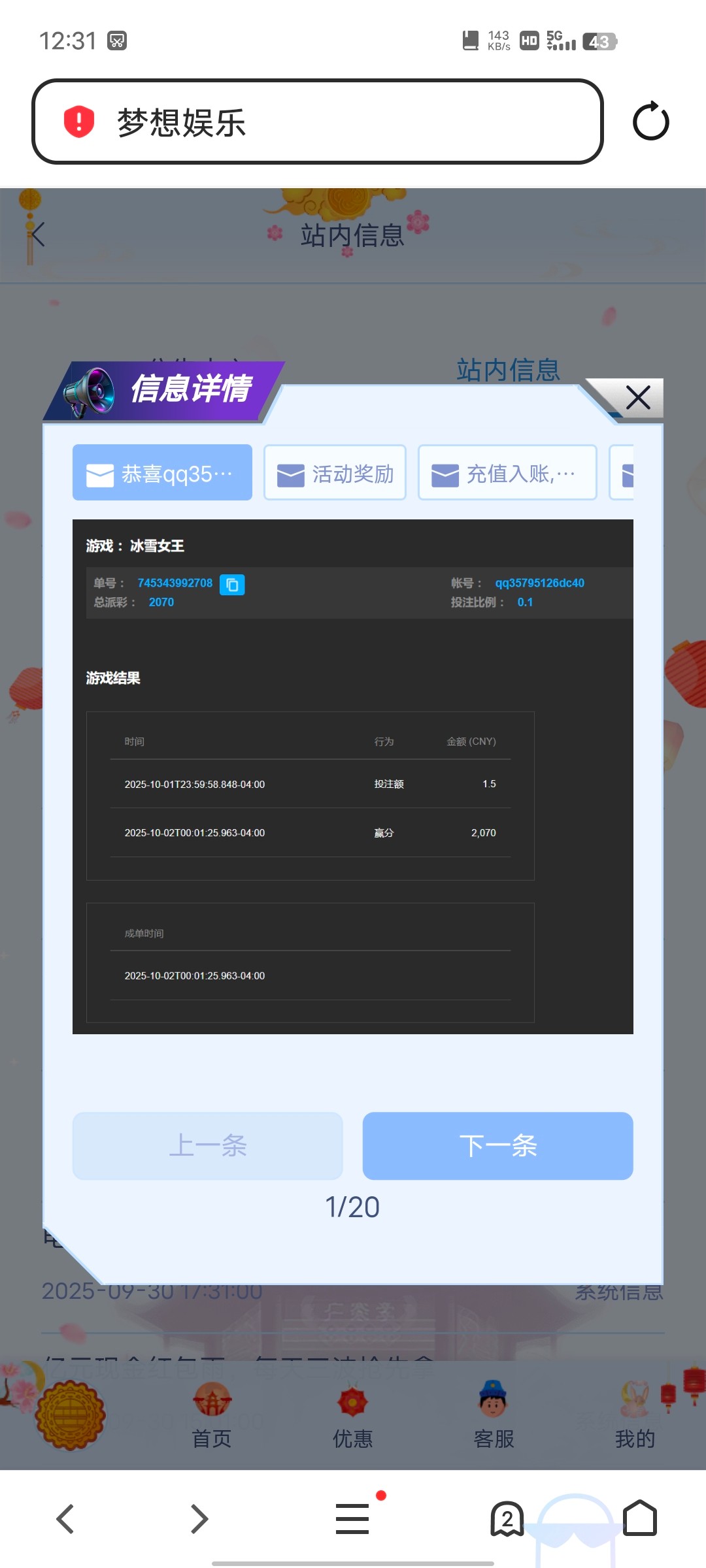 大水上次提1000这次充100本来想5一转最后1.5爆2070给力台