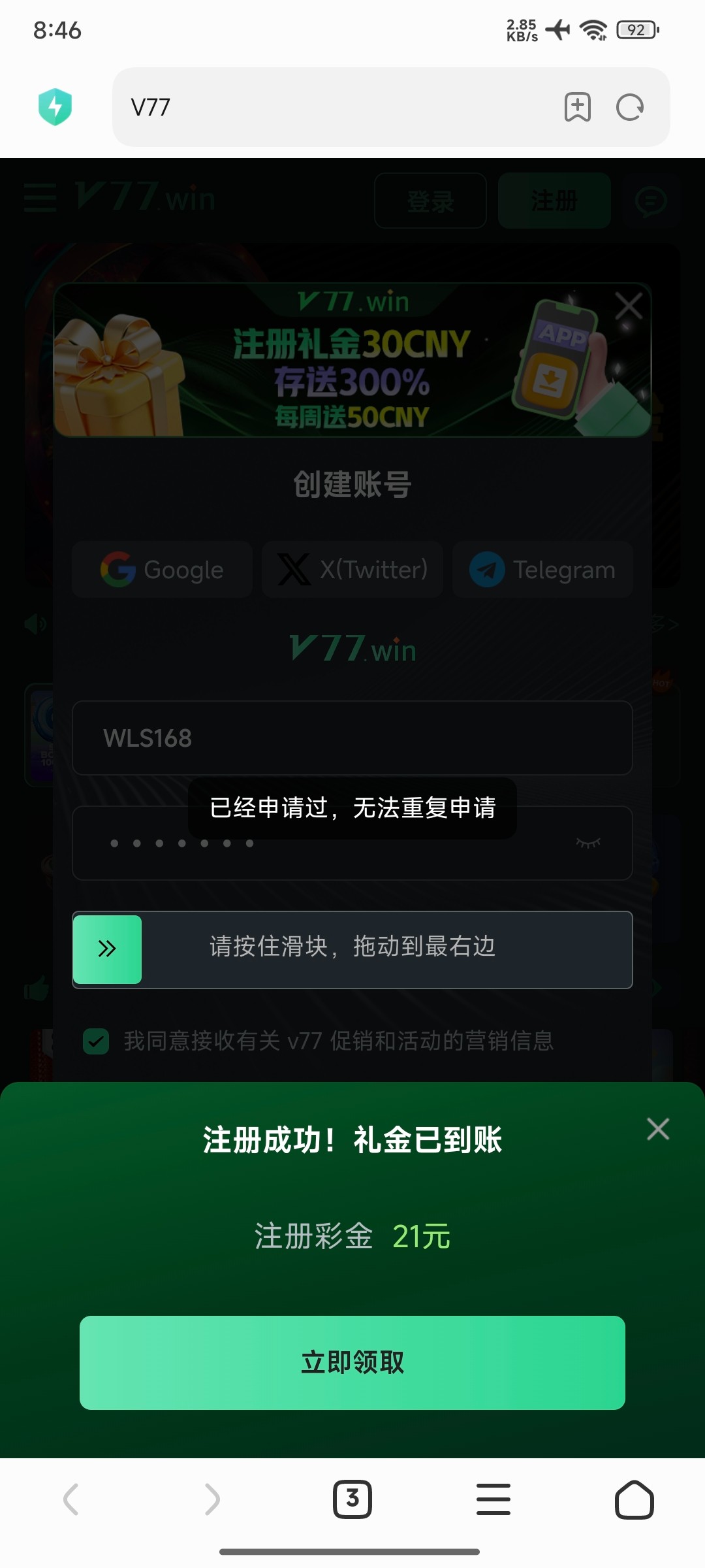 atf888 以前有人发送过 打到2000多冻结了