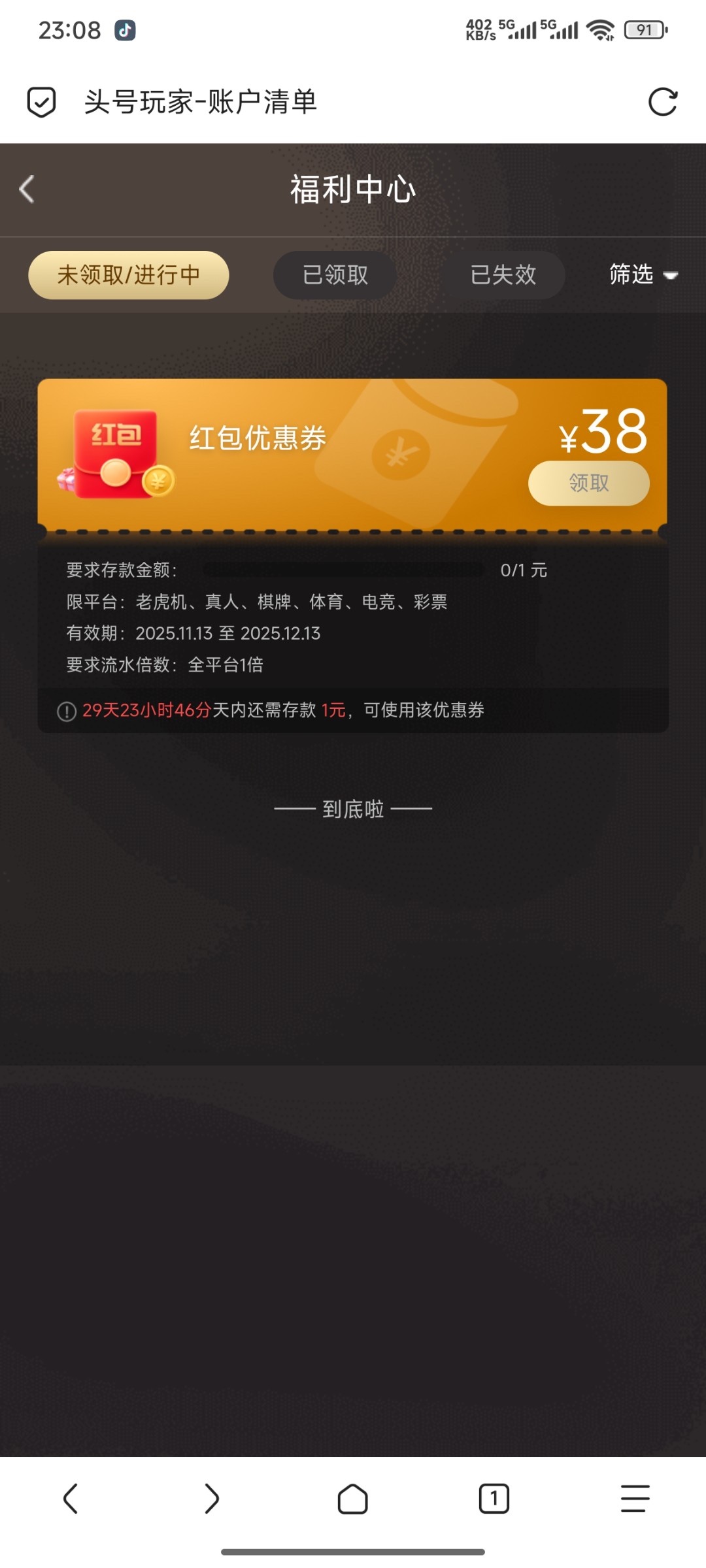 给了个50券,20倍流水有必要上吗