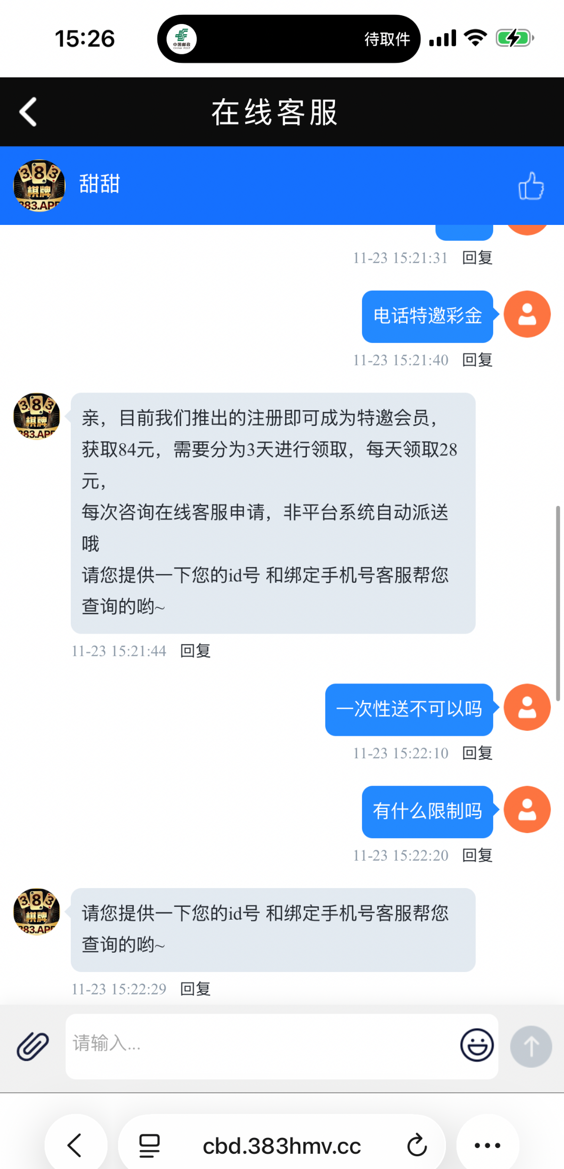 注册后找客服申请84元彩金,分三天送每天找客服送28彩金,一倍水只能玩电子/捕鱼 打够流水账户有多少充多少再打一倍水就可以提现了,链接383129.vip