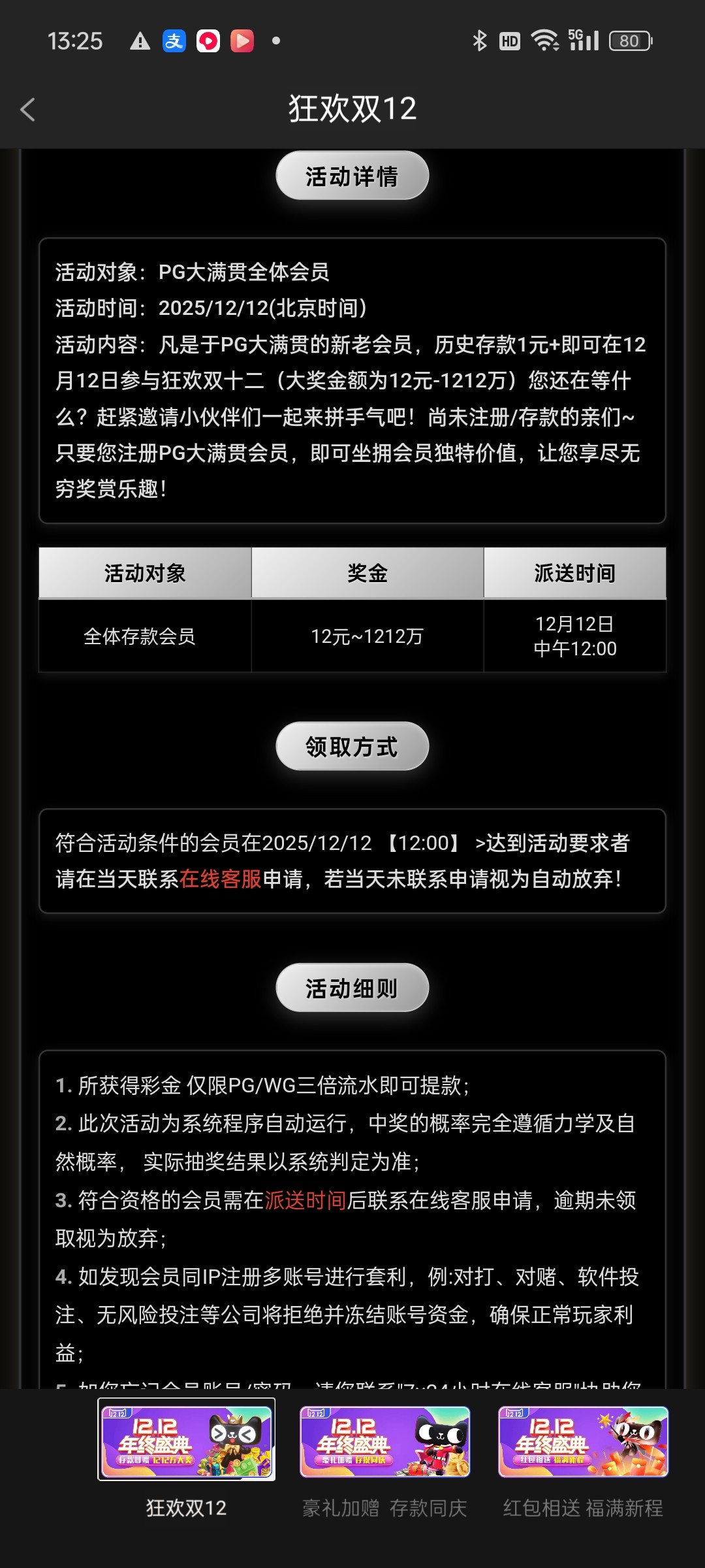 【PG大满贯】 双12彩金