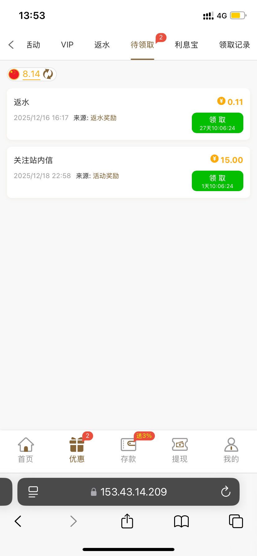 没有站内信彩金
