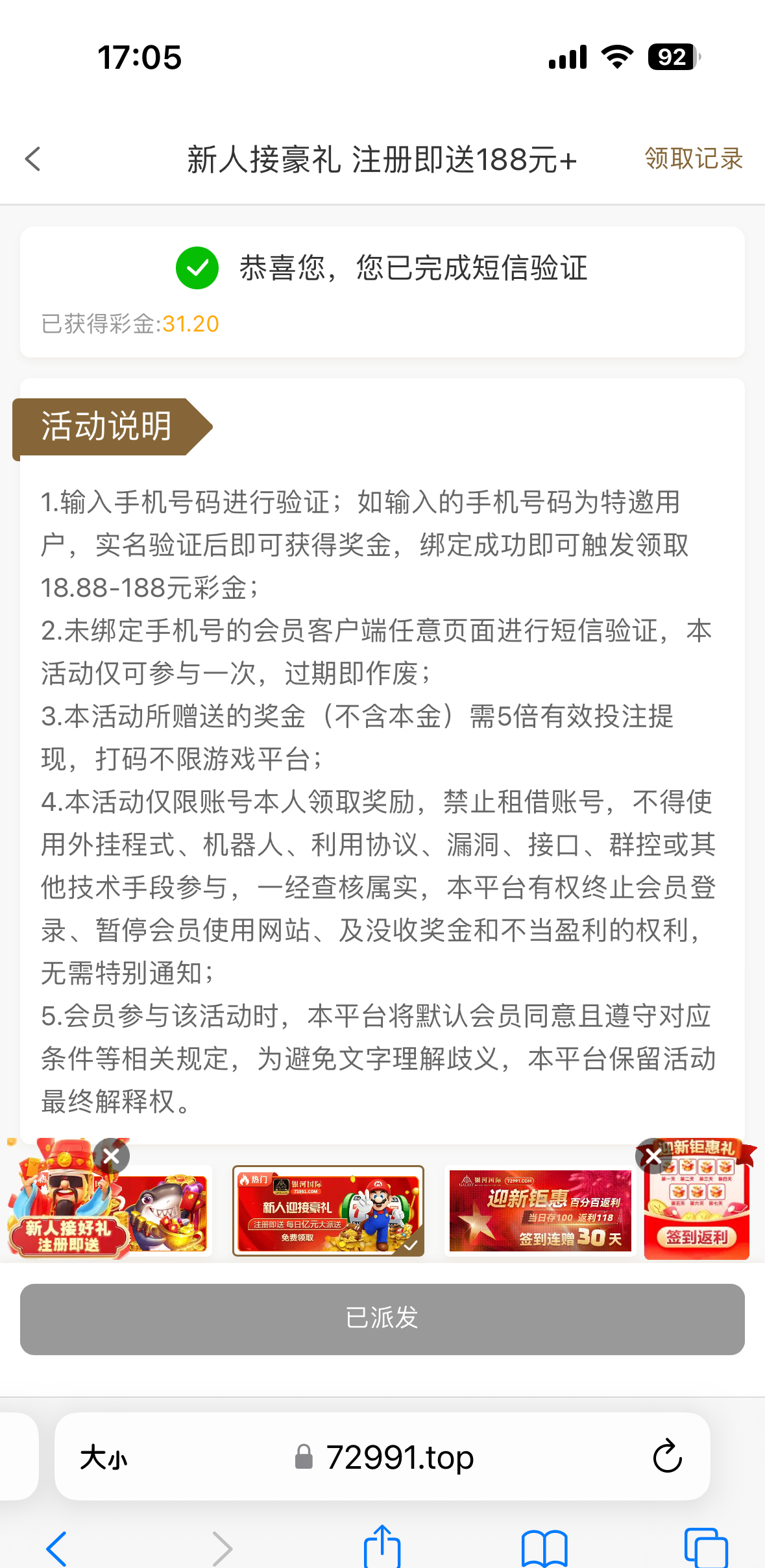 我是接到电话然后才去领的你们可以去试一下72991.com