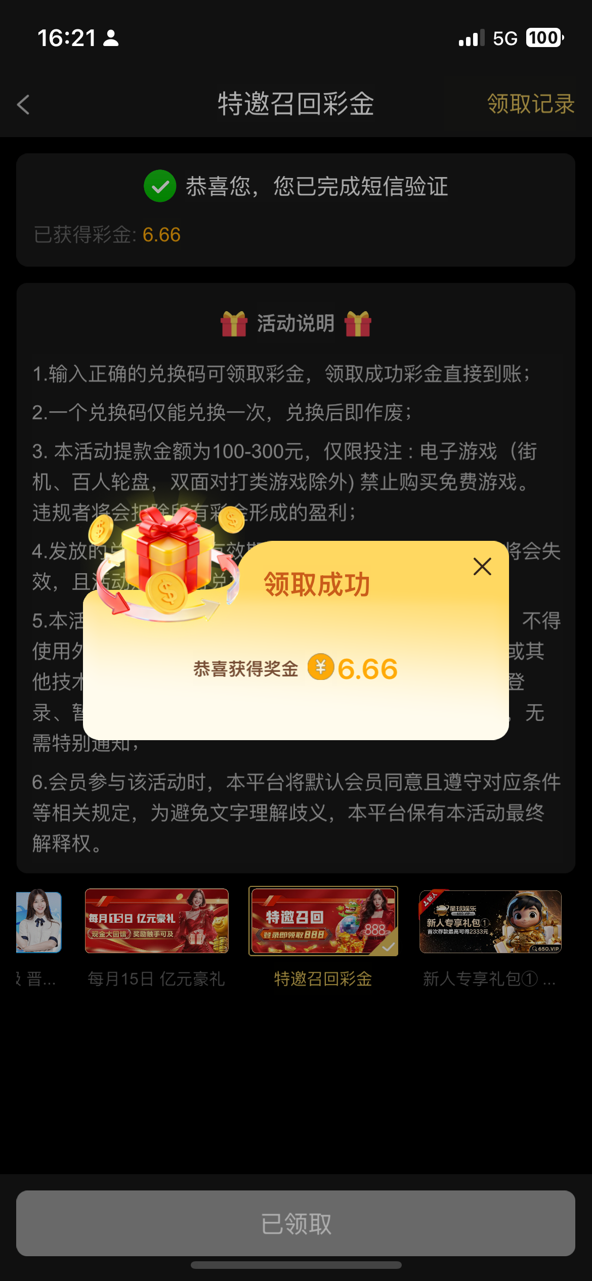 我是接了个电话去看的领了6.66 有号的可以去看看650.vip