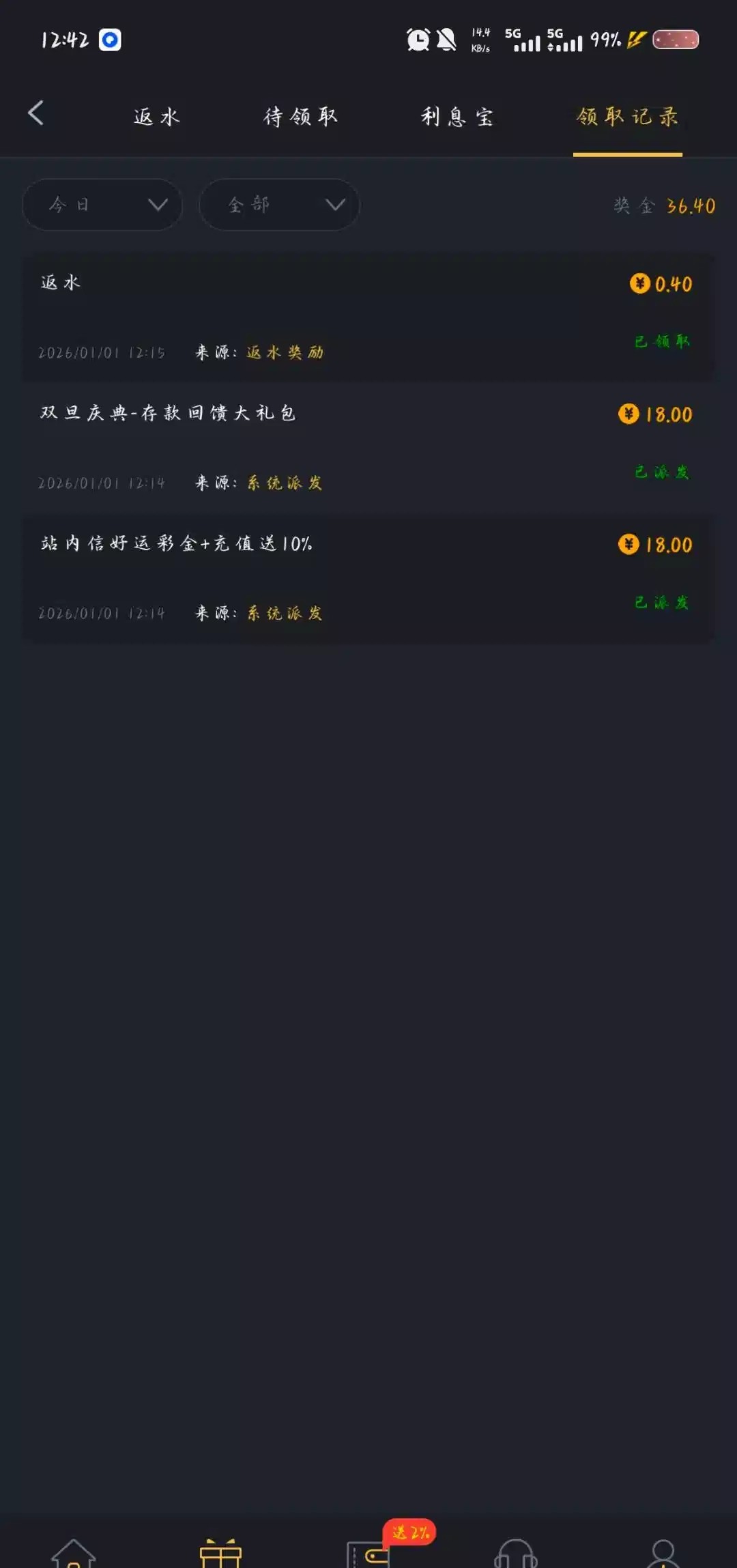 威尼斯人送36今天元旦上去领了两个18看图片
