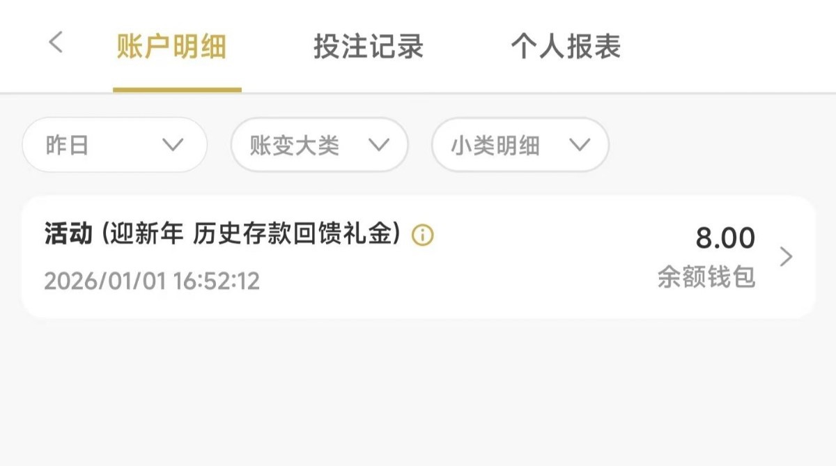 历史存款200元才有,没到200元没有!