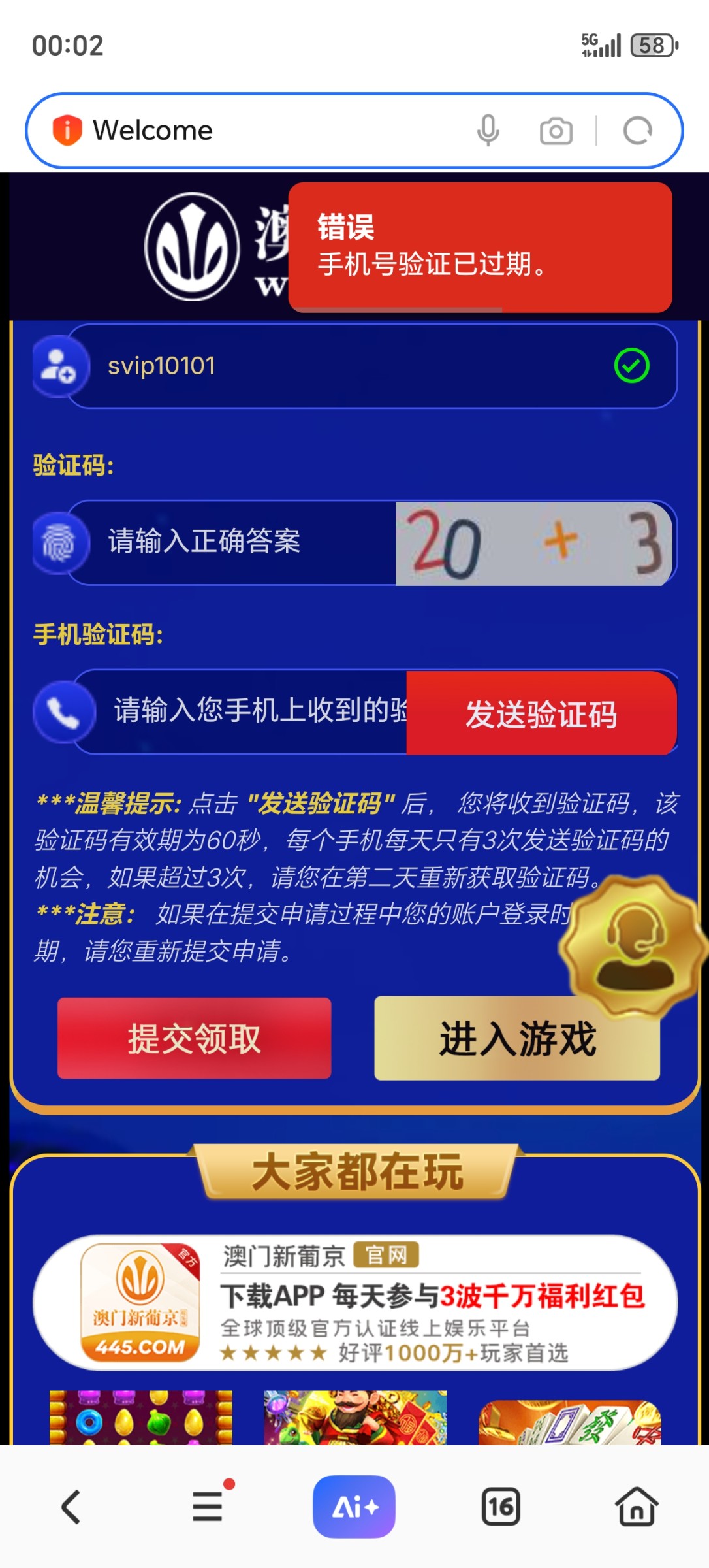 【新葡京445】短信特邀送44