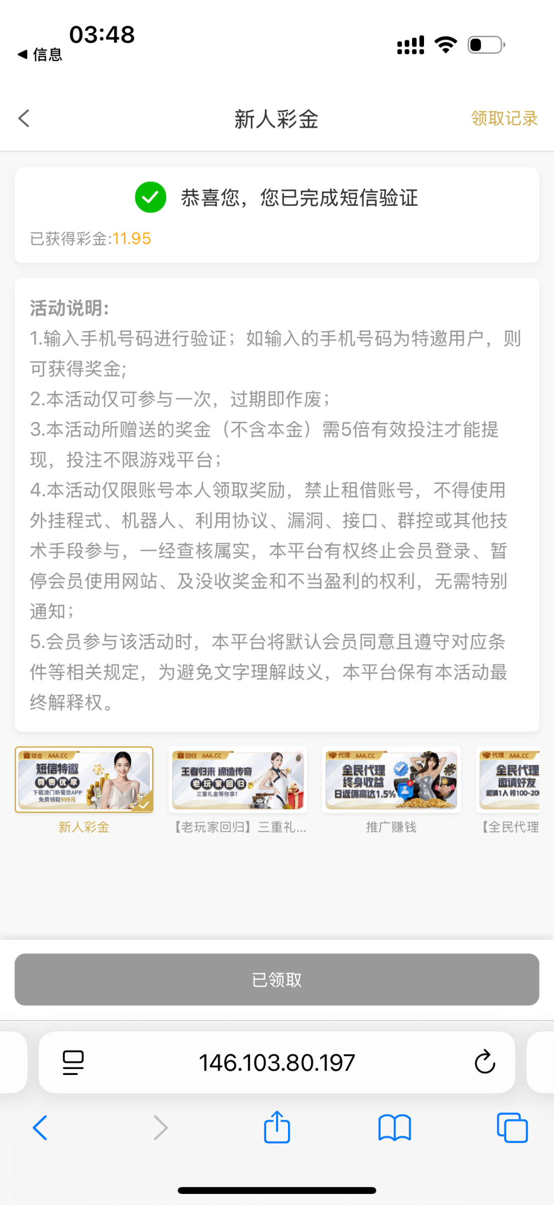 领过了账号给我冻结了