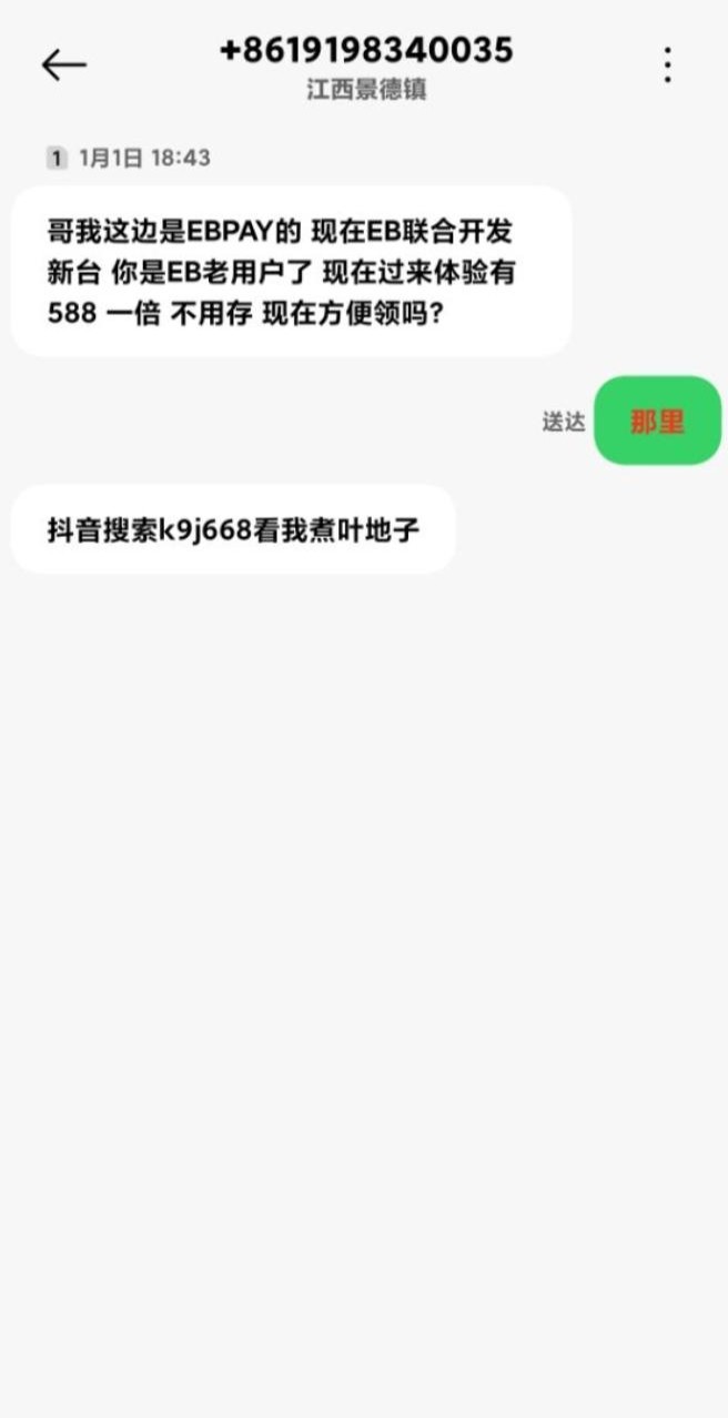 看图联系抖音那个网址客服。 说收到短信送彩金。他会让你下载 MC聊天软件添加客服以后会给你平台网址注册。绑定银行卡姓名发他账号就送三倍流水没有游戏限制建议提eb钱包
