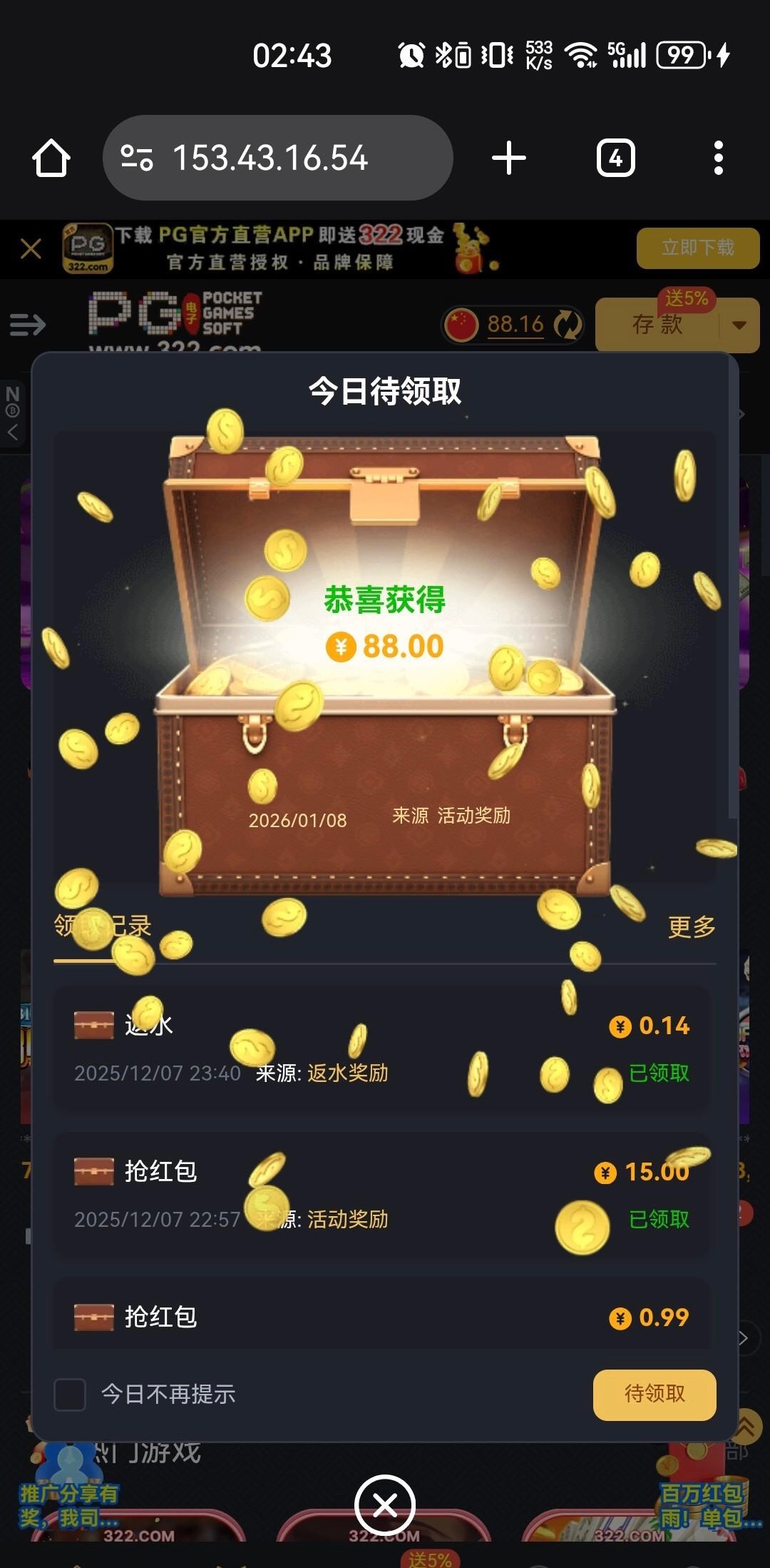 【pg322】登录彩金