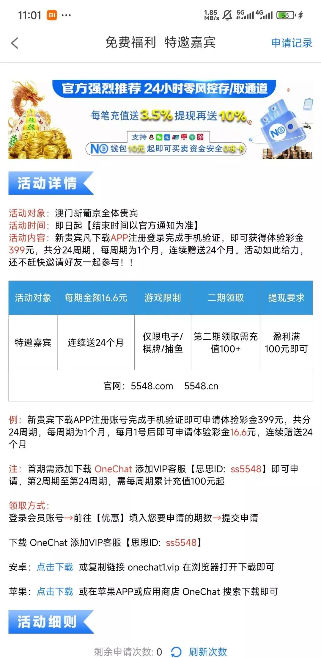 注册送16.6直接申请也行 我就是直接申请的 有的老哥去看看网址5548.com 图片上也有 没打出来