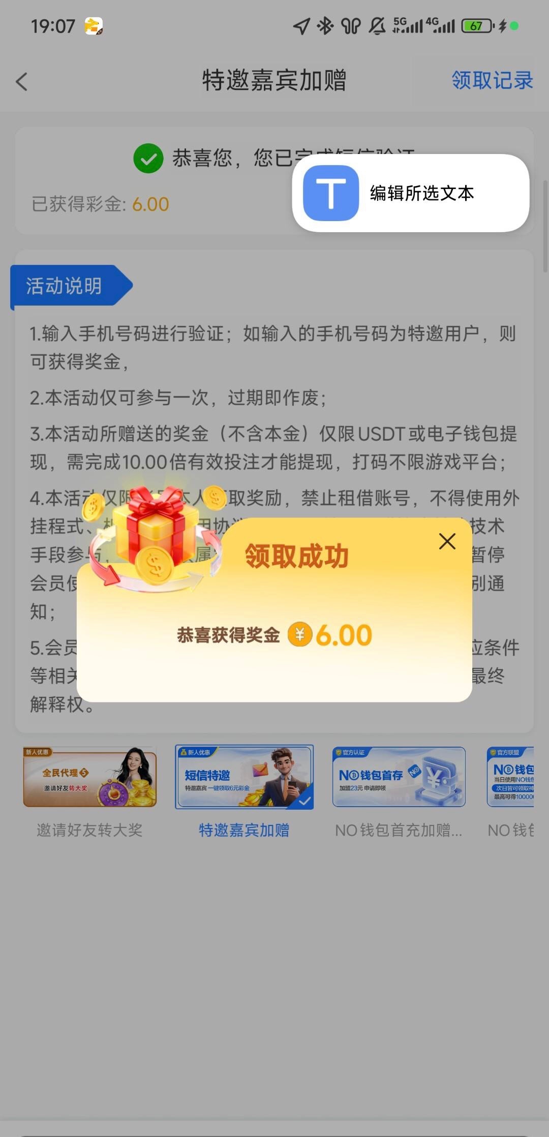 领到了6
