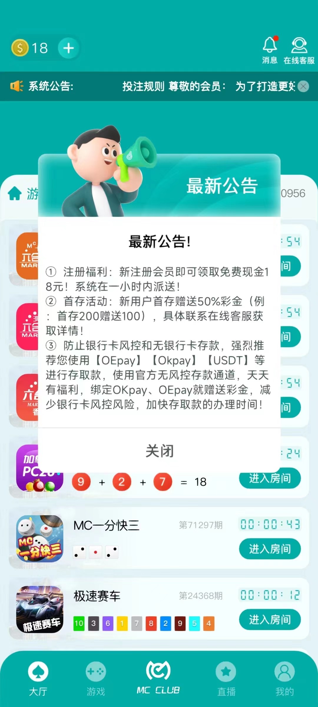 【MC俱乐部】—注册送18