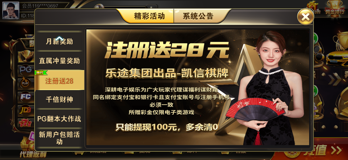 凯信棋牌注册绑卡送28